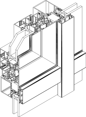 - Возможен монтаж по принципу стойка-стойка или ригель-ригель, что значительно упрощает решение многих конструктивных вопросов и позволяет уменьшить отходы профилей за счёт их использования на других участках фасада;
