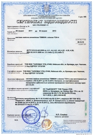 Компания «Талисман» провела сертификационные испытания и получила сертификат соответствия №UA1.170.0182267-11 на свои новые продукты: