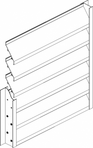 - ТВР3 - ламель и кронштейн вентрешетки в сочетании со стойкой из системы ТП38 (или из системы Т48, если проёмы очень большие) дают возможность реализовать конструкцию, которую можно использовать не только для вентиляционных систем, но и для систем солнцезащиты и ограничения доступа, когда воздухообмен с окружающим пространством важен (перкинги, бойлерные. трансформаторные станции). В данном случае мы получаем самую недорогую систему на рынке Украины, даже в сравнении с нашей системой "Горизонт".